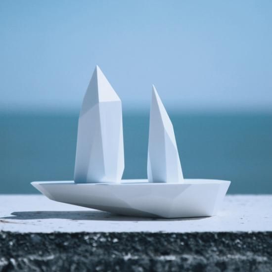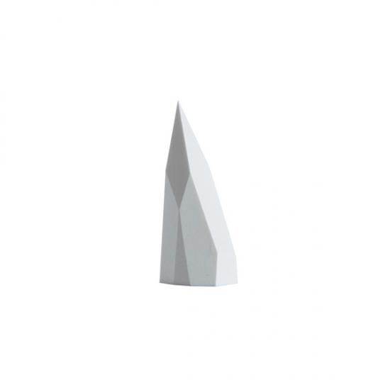 人造大理石を削り出して作られた、人工的で不規則な多面彫刻。そこから生まれる稜線と陰影。素材の持つ奥行き感とともに空間にハリをもたらす。緊張を生むことで緩和が訪れる。暮らしの顔となる場所をつくる。骨白色のオブジェクト。